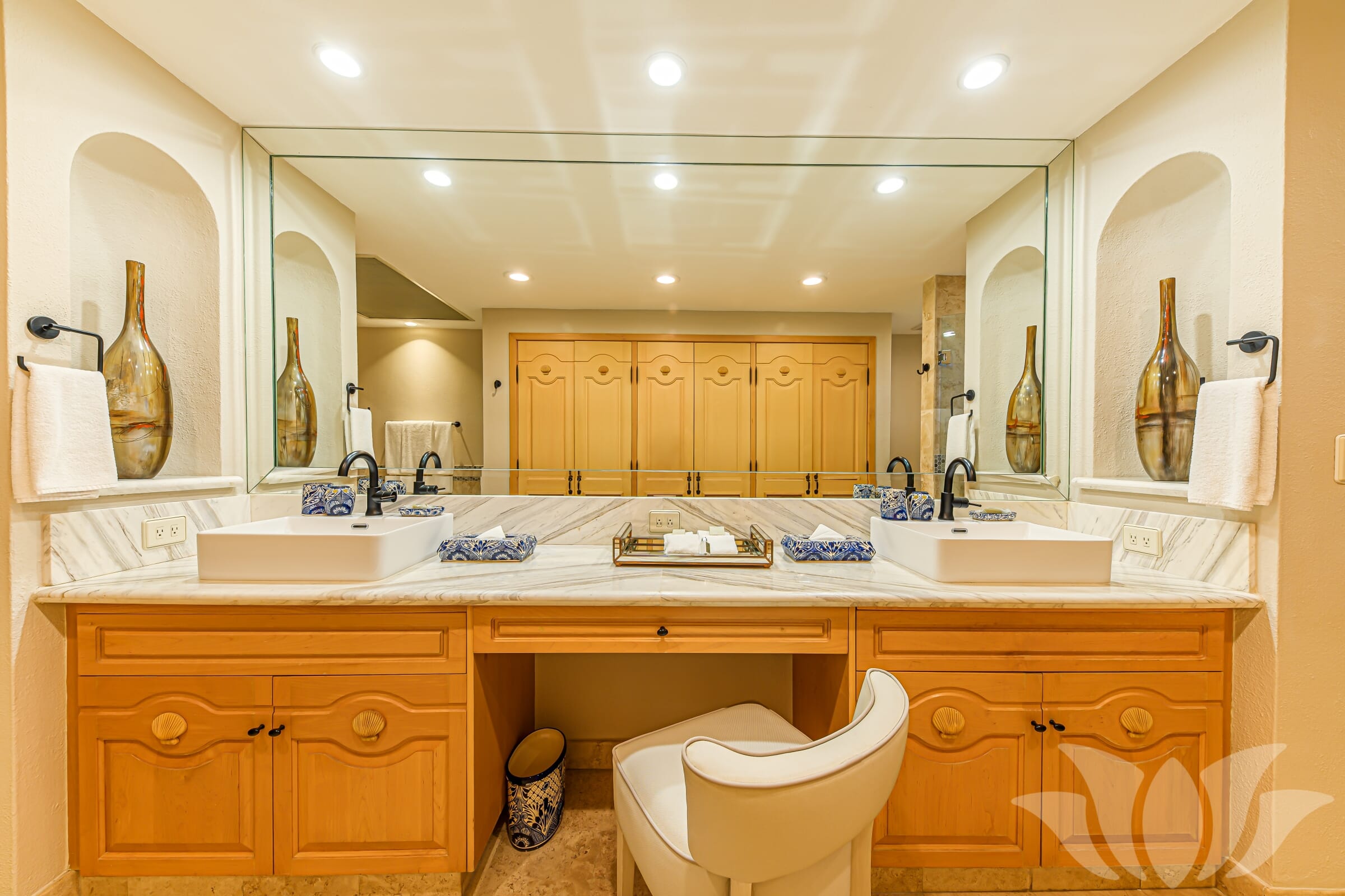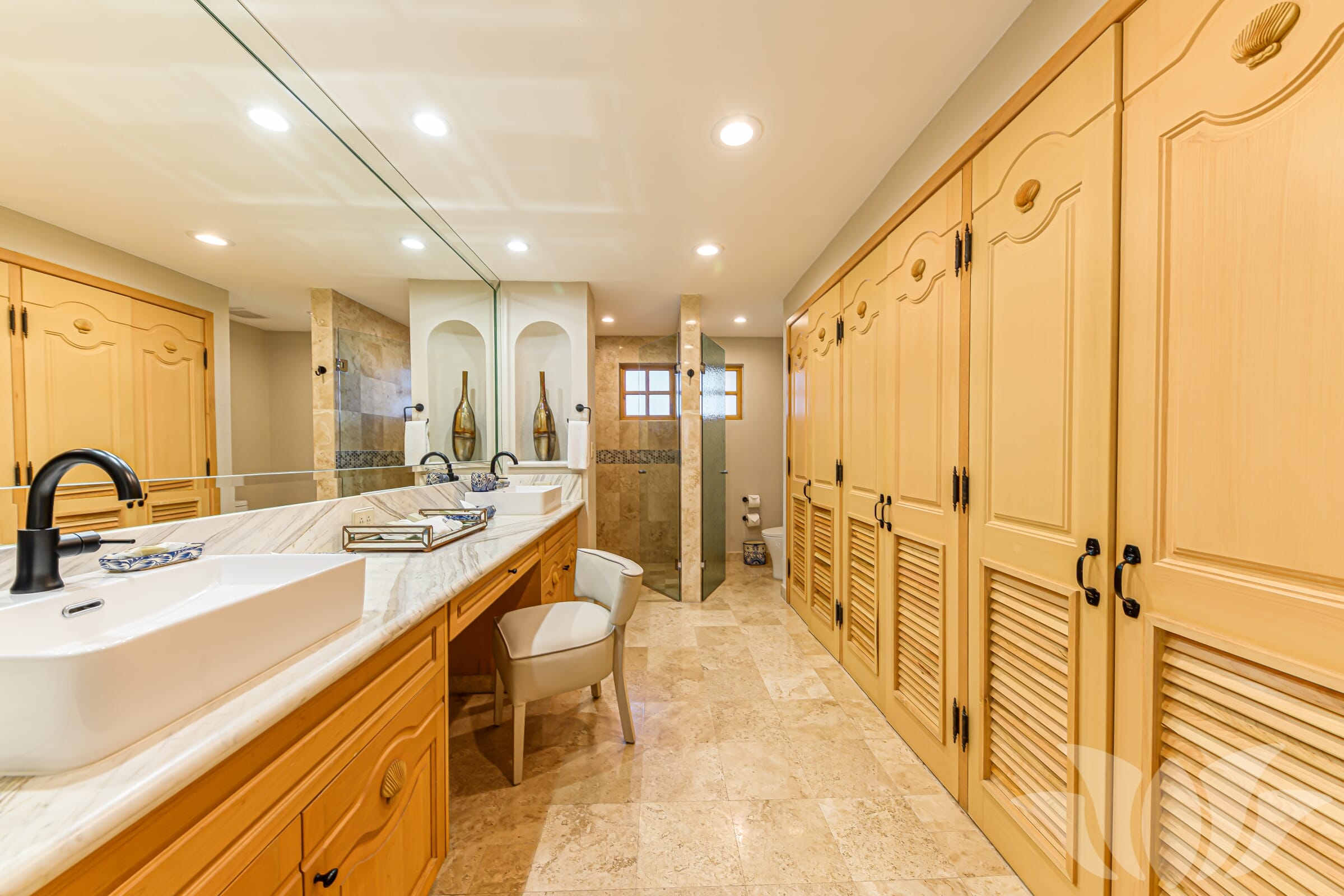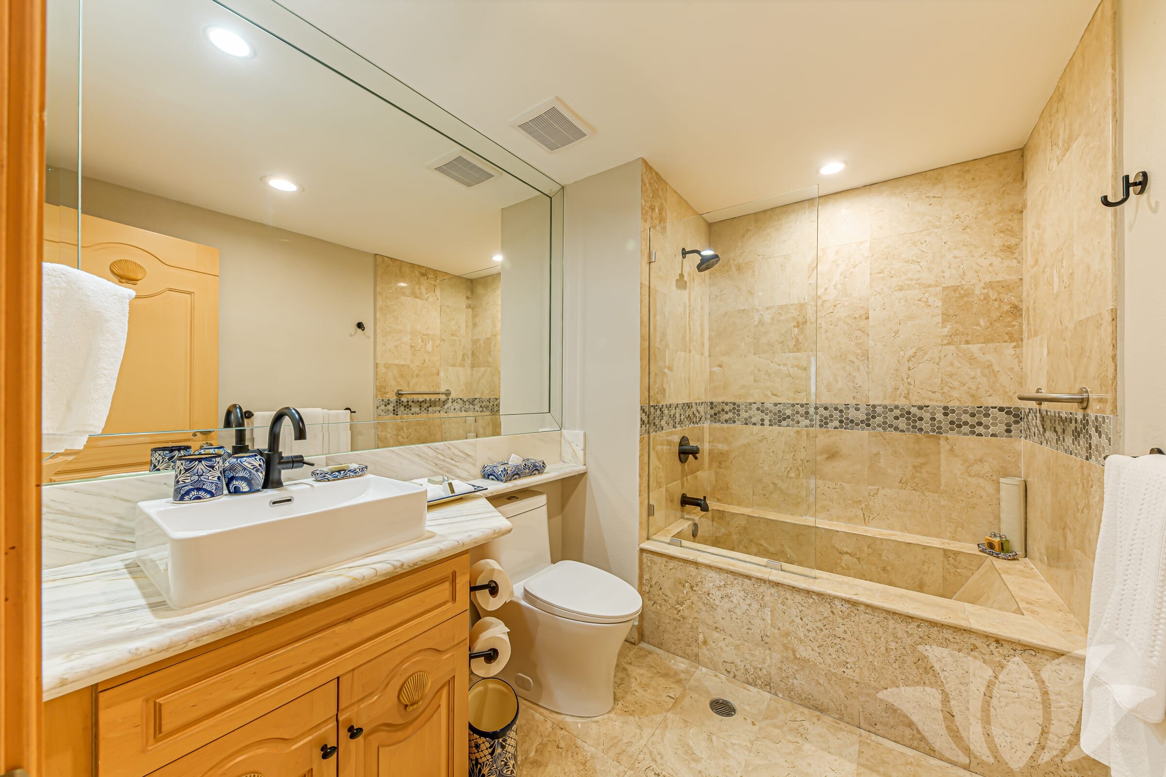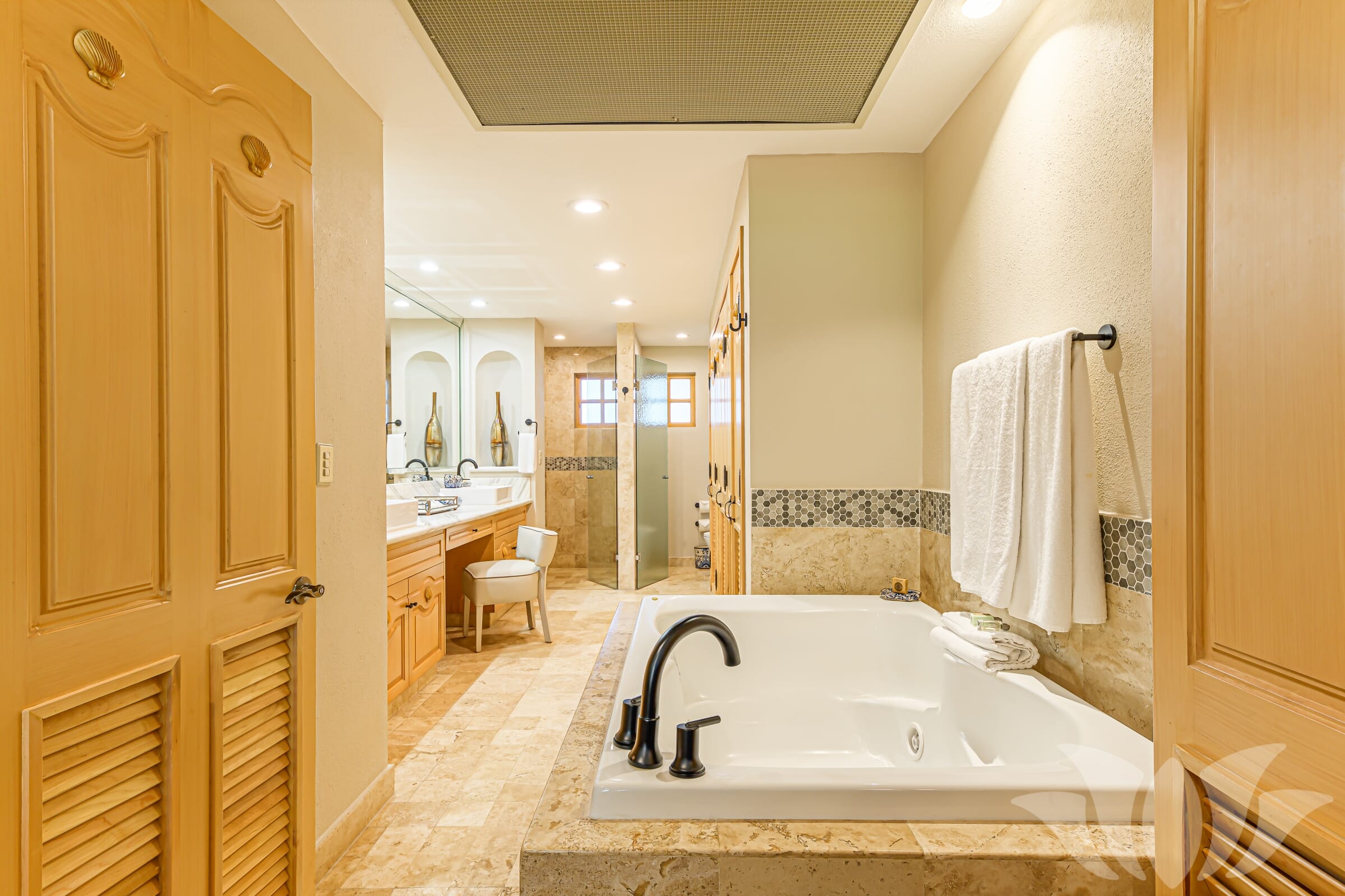 3 baths (with showers); 1 with jetted tub, 1 with non-jetted deep tub
