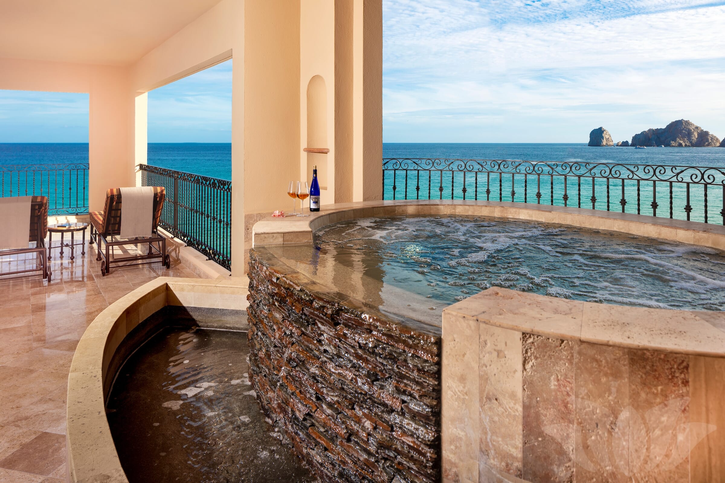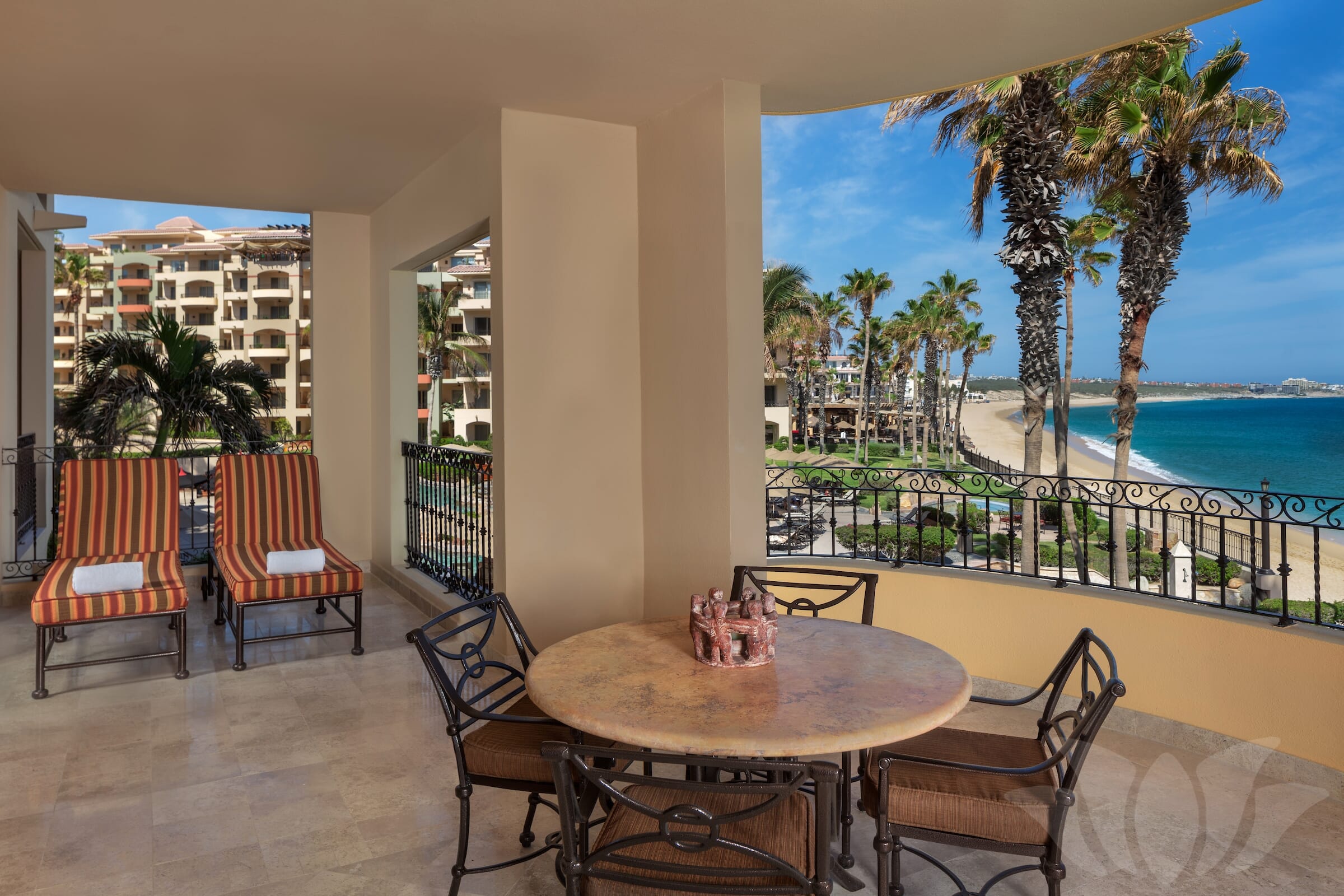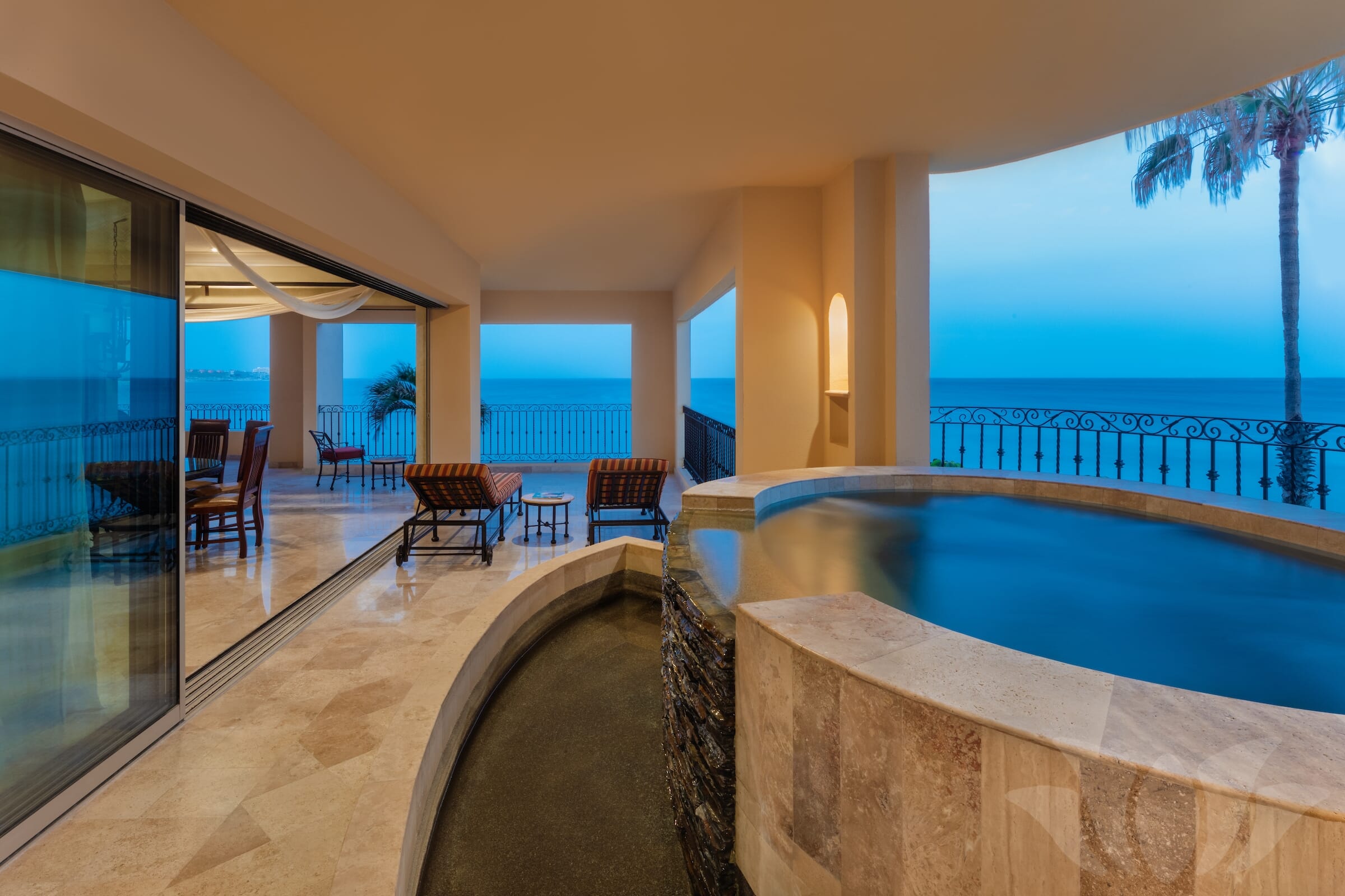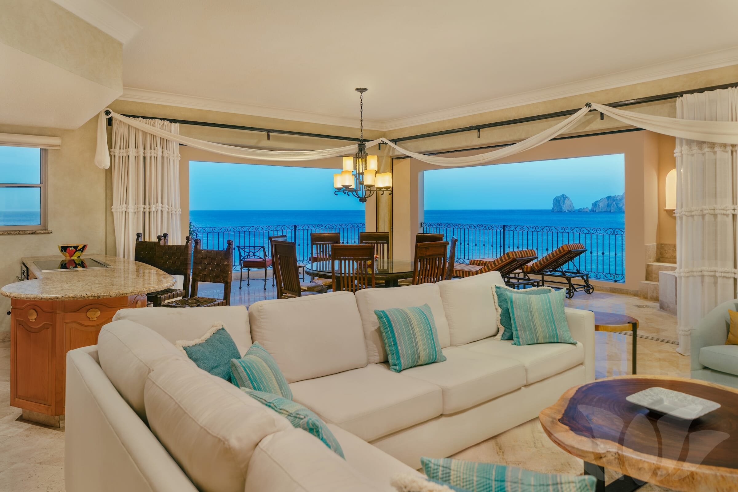 This Penthouse style ocean front Villa has the most incredible views from the over 1000 square feet of terrace surrounding almost 3000 square feet of living space. Enjoy amazing vistas of the ocean, Land’s End, Medano Beach, the pool area, and Cabo San Lucas. Every room in the Villa offers stunning views.