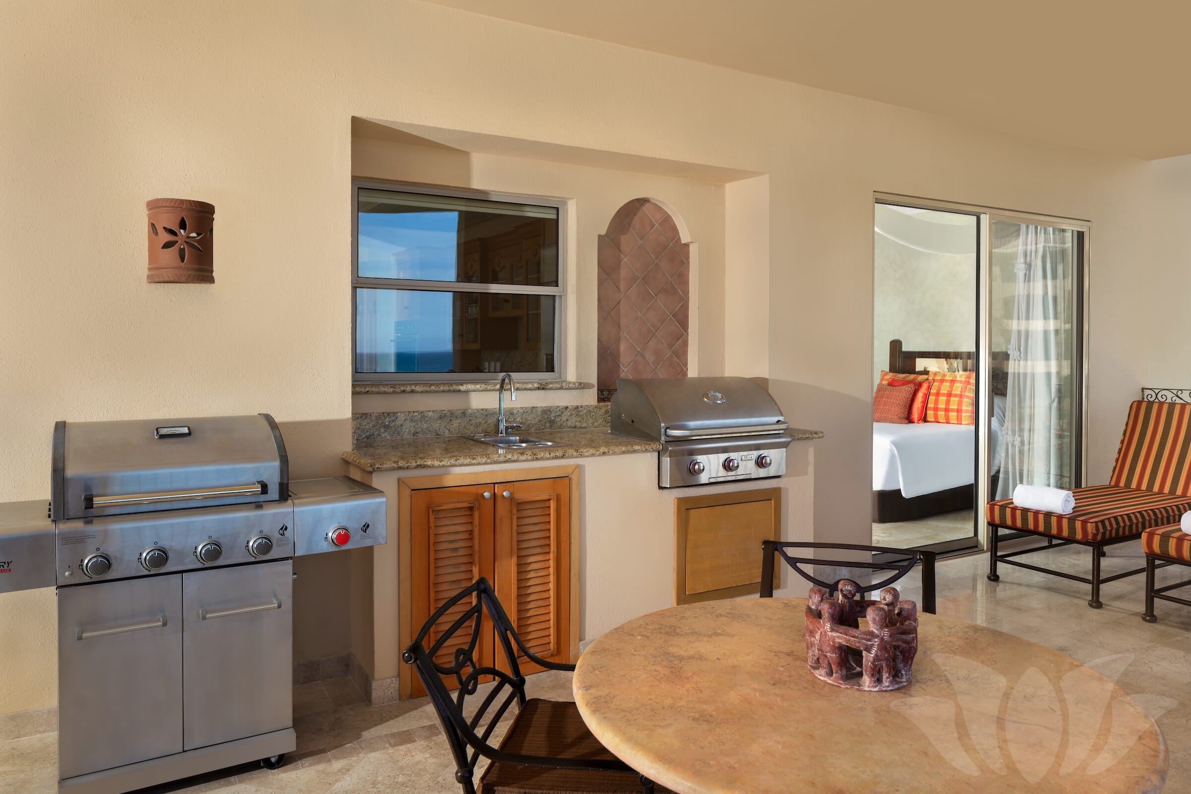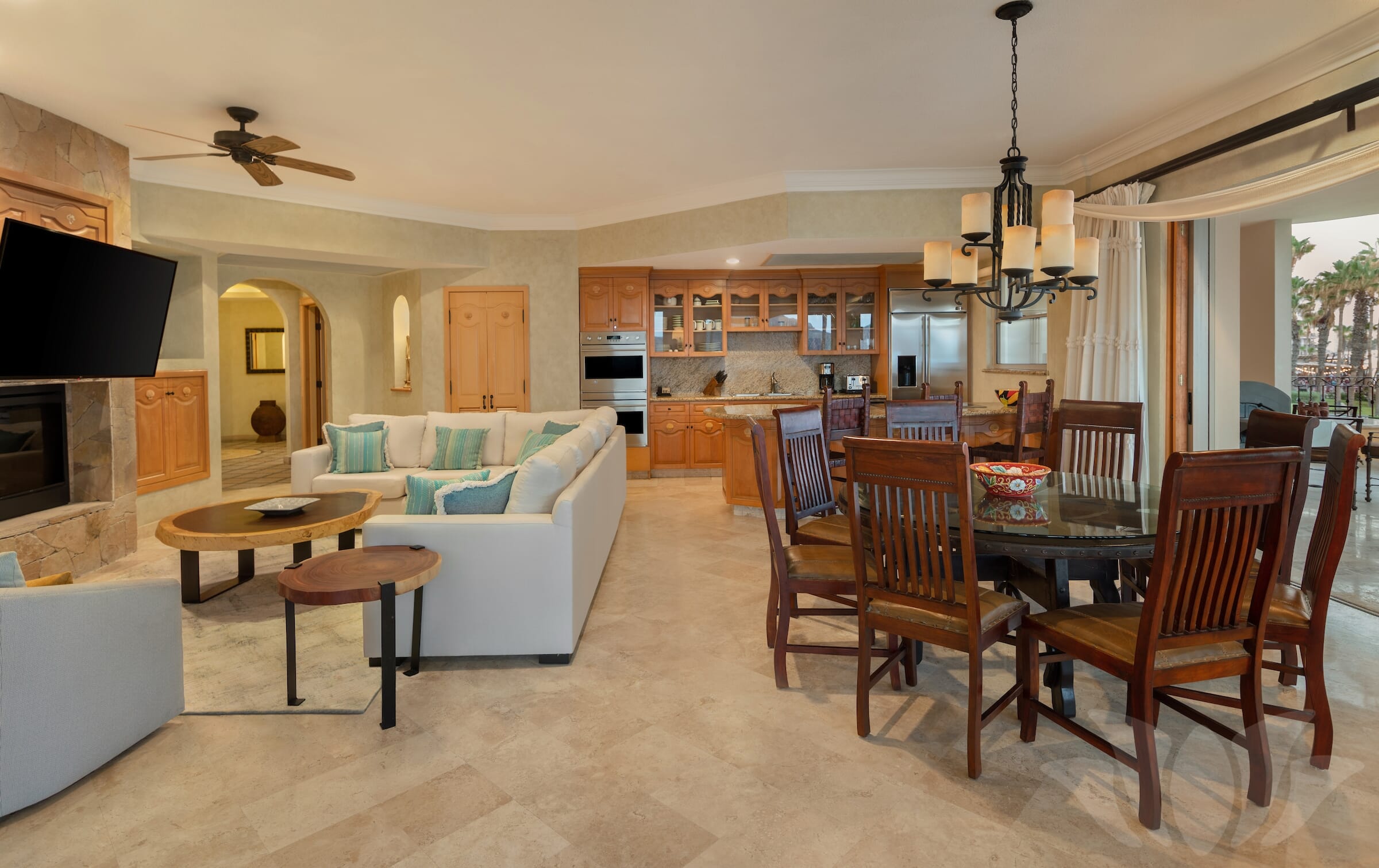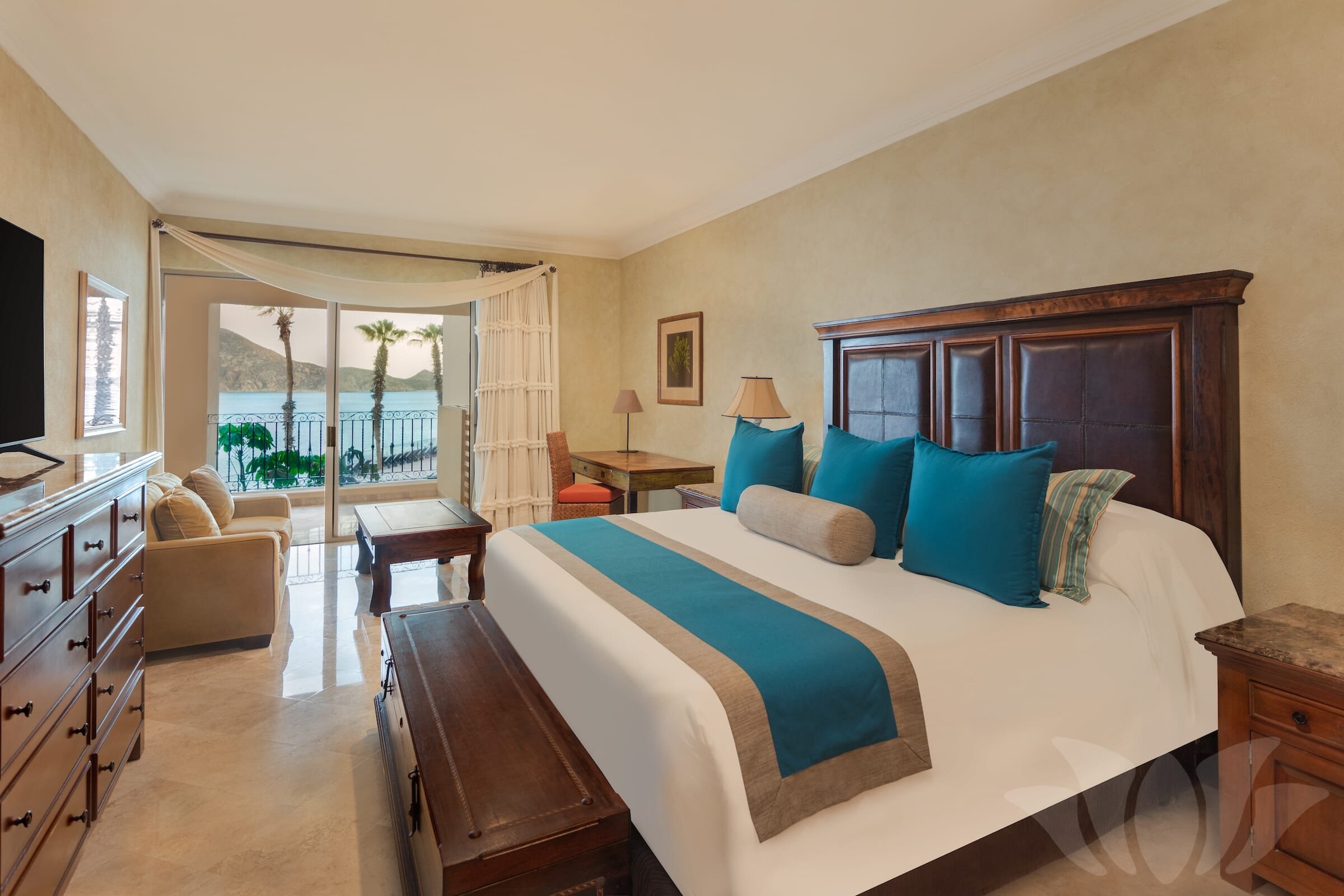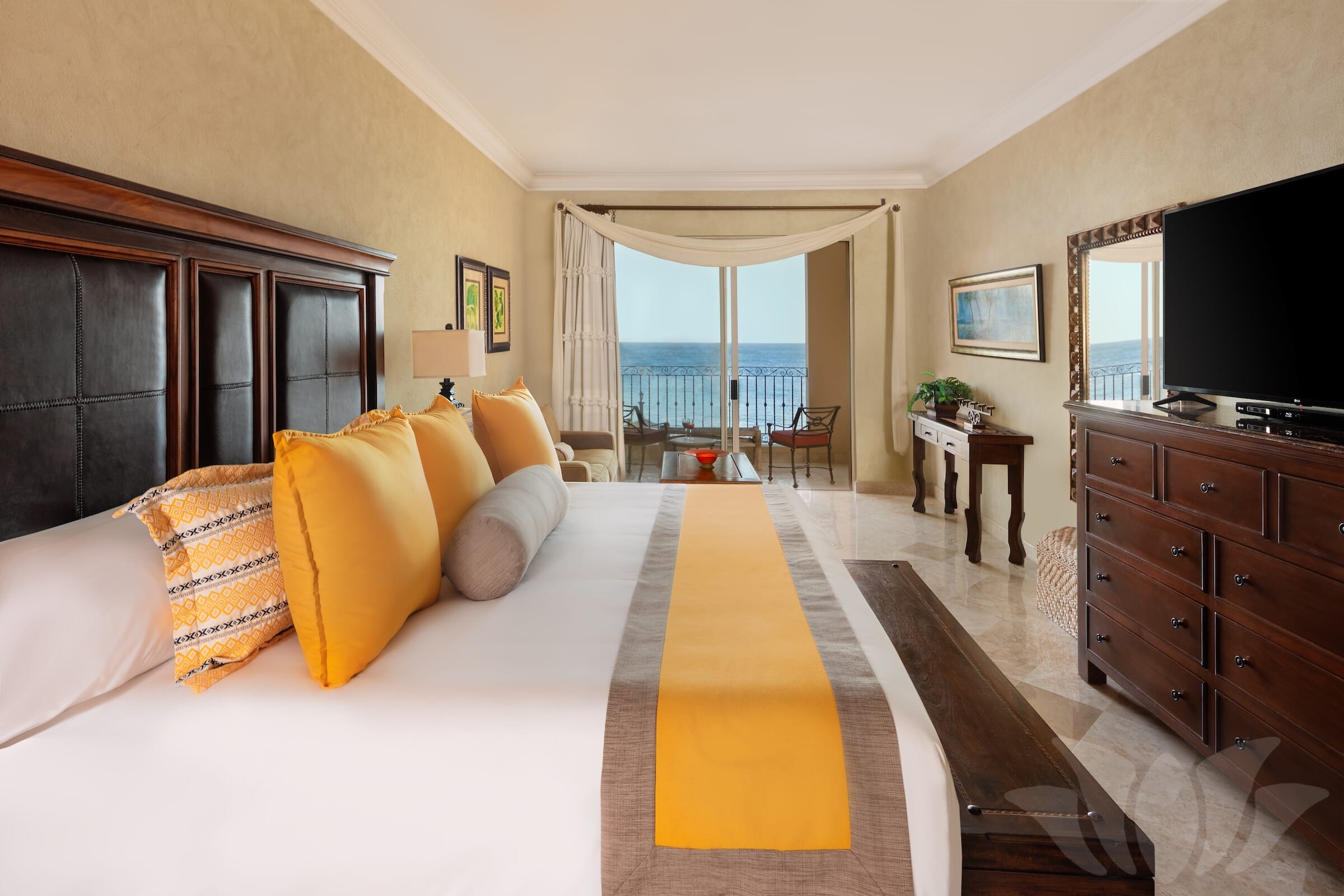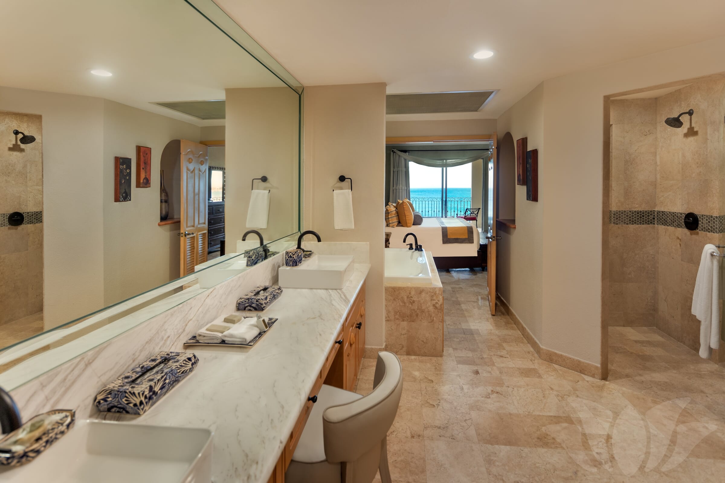 This Penthouse style ocean front Villa has the most incredible views from the over 1000 square feet of terrace surrounding almost 3000 square feet of living space. Enjoy amazing vistas of the ocean, Land’s End, Medano Beach, the pool area, and Cabo San Lucas. Every room in the Villa offers stunning views.