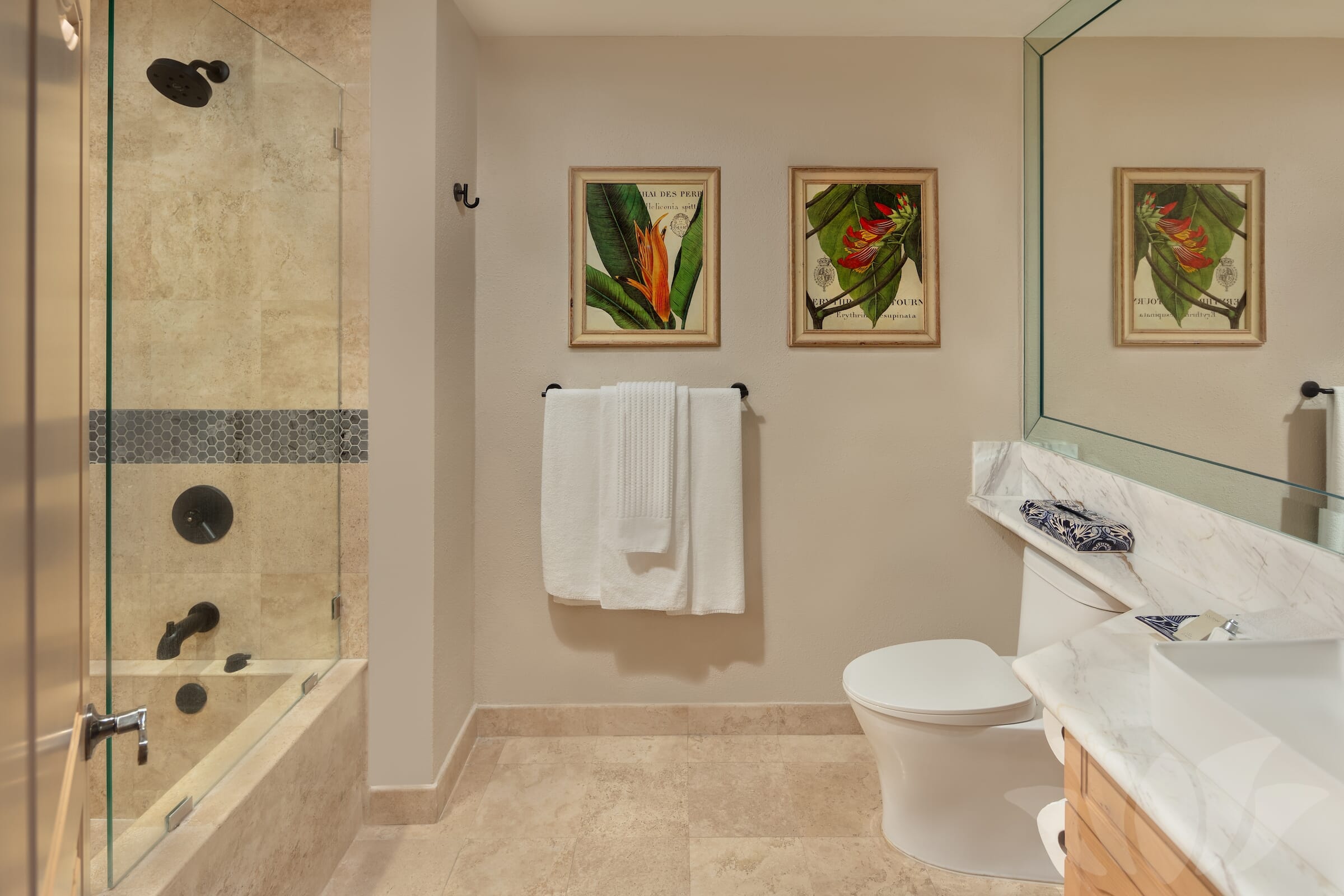 With three bedrooms and four full baths (two with spa tubs), this Villa can sleep up to 10 people comfortably. The spacious living and dining rooms are the perfect place to relax with family and friends. A full gourmet kitchen provides all you need to prepare that special meal or just enjoy a snack. The large terrace features a private hot tub, gas barbecue and plenty of space for dining, sunbathing, or just relaxing while you watch the sunset.