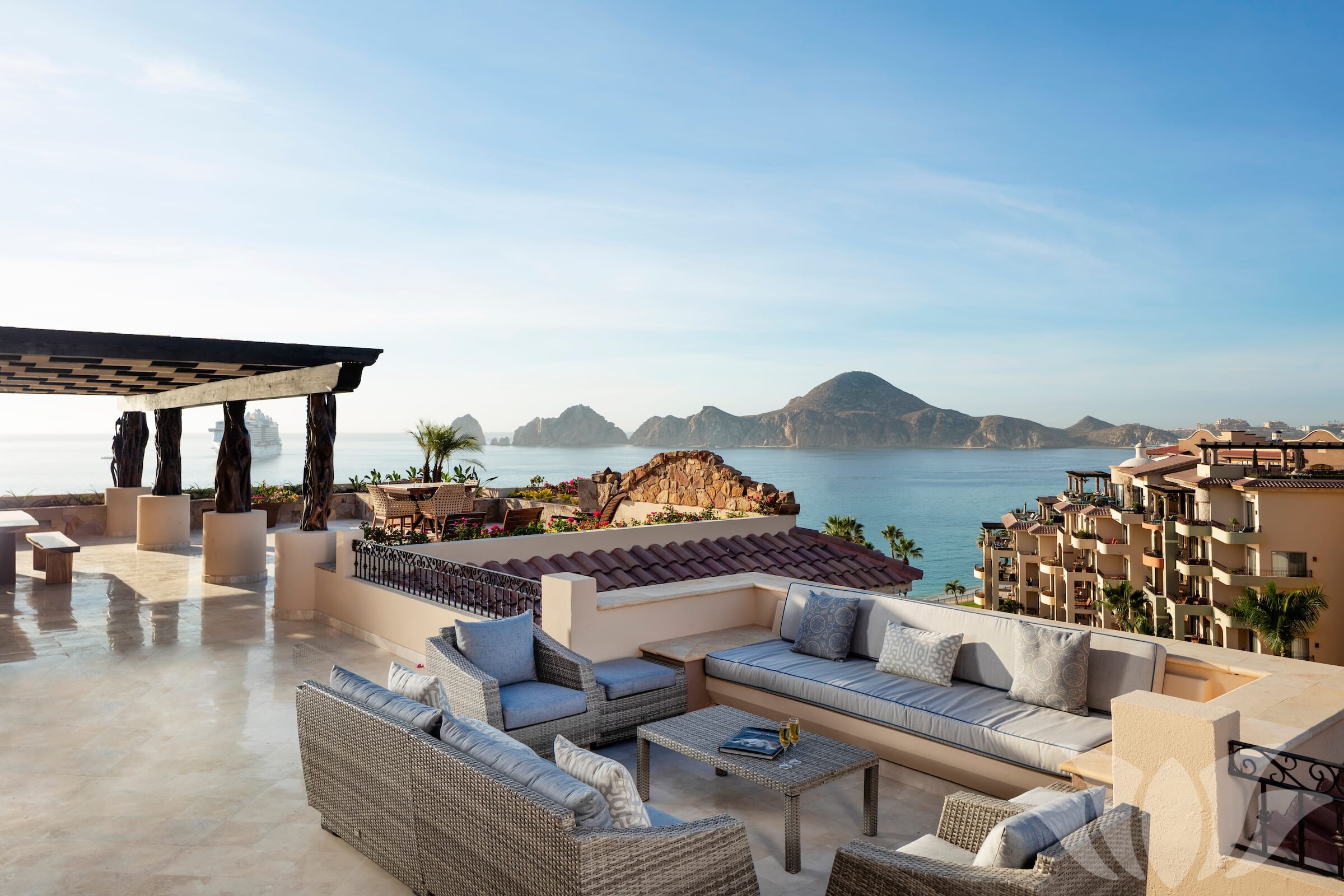 Experience unparalleled coastal elegance in Penthouse 1806, a newly remodeled three-bedroom, four-bathroom oceanfront sanctuary at the acclaimed Villa La Estancia Beach Resort & Spa in Cabo San Lucas. Perched high above the Sea of Cortez with sweeping, postcard-perfect views of Land’s End, this 5,000 sq ft penthouse blends the spacious comfort of a private residence with the refined service of a five-star resort—ideal for families or groups of up to eight guests seeking a truly elevated escape.