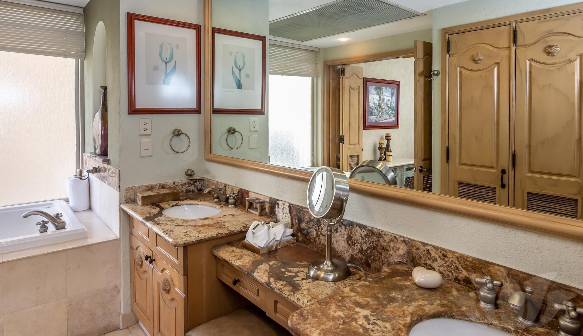 2 separate Master bedrooms each with king size Sealy’s pillow top mattress beds and sofas in each room. Also includes an armoire/entertainment center, sitting area, huge closet, huge bathroom area with separate shower, Jacuzzi tub, a make-up area with double sinks, hairdryer and iPod docking stations with built-in clock radio.